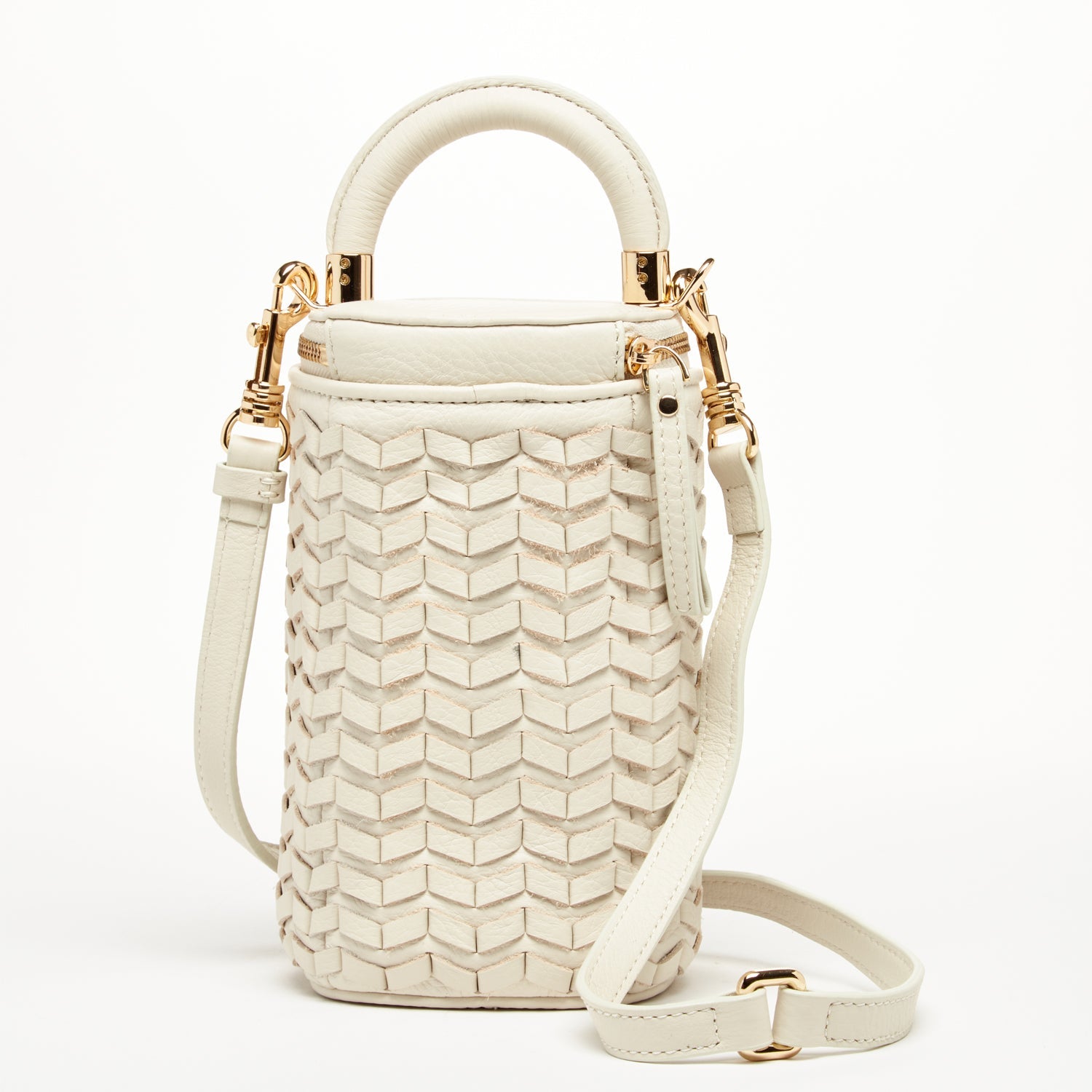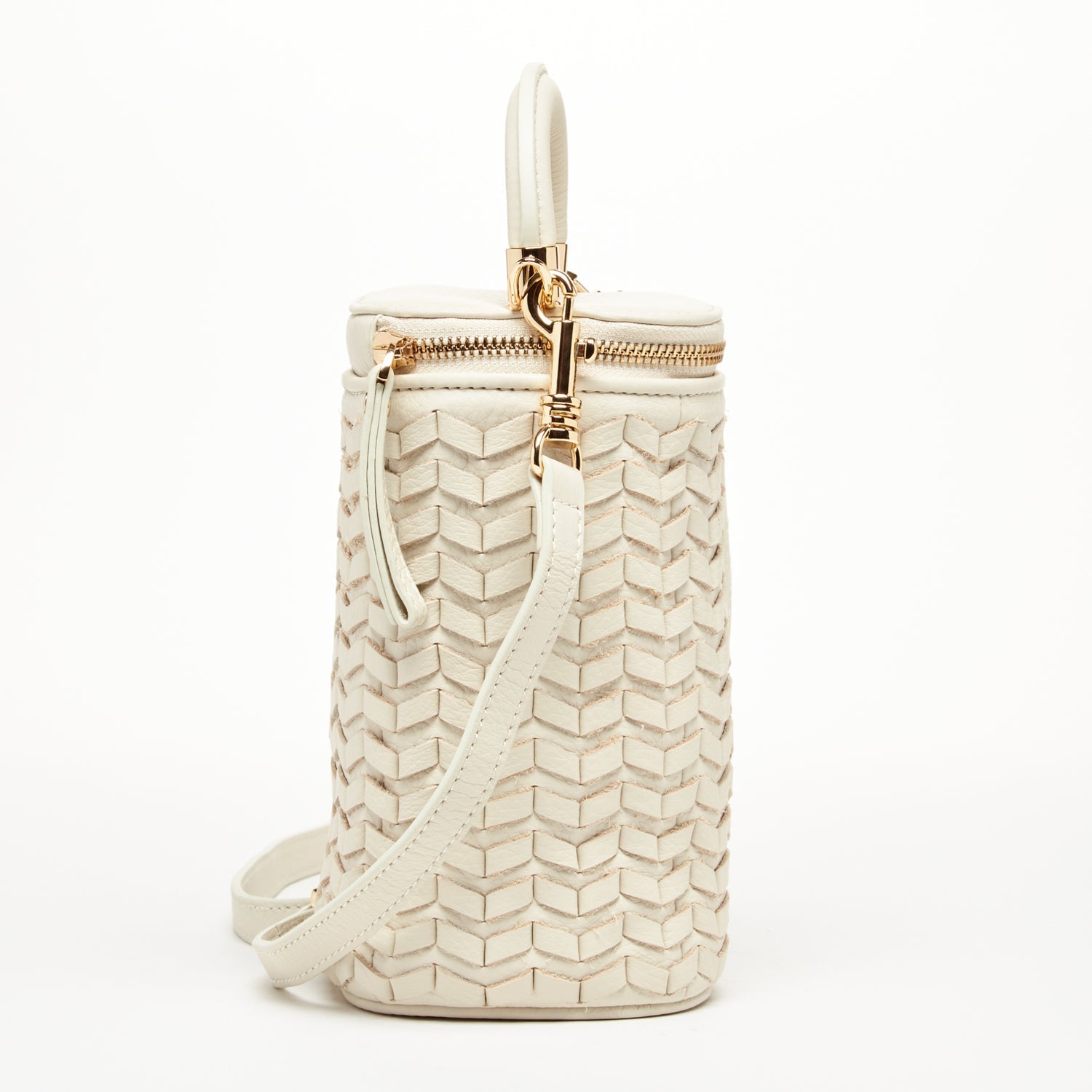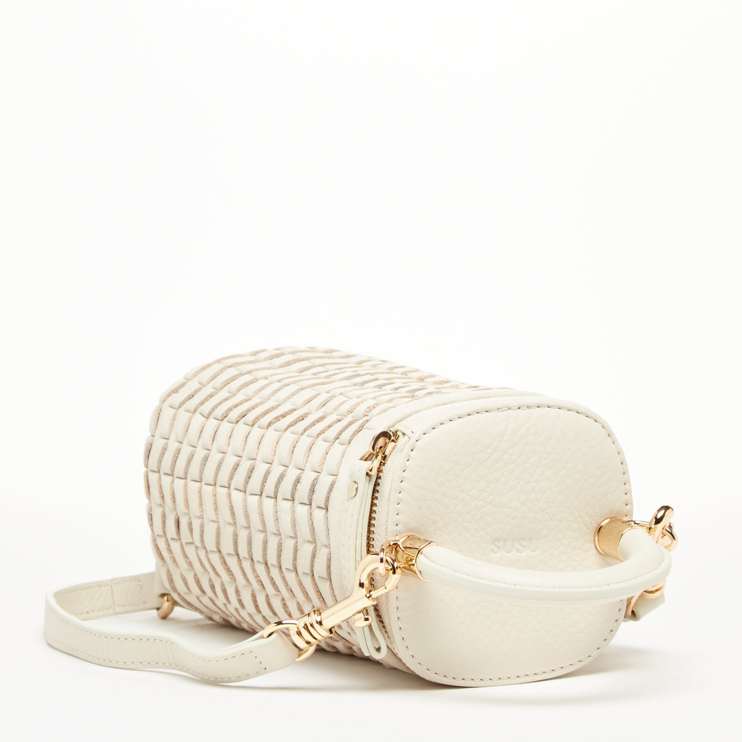 SUSU Basket Weave Leather Purse Off-white Bucket Bag